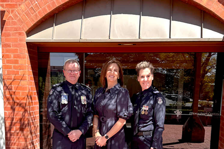 Jade Benham, MP, with Superintendent John O’Connor and Detective Sergeant Narelle Kolpin at the National Police Remembrance Day Service at Mildura.
