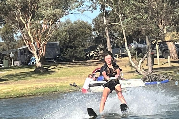 Archie Tyler swaps his fishing rod for a pair of skis at Tchum Lake.
