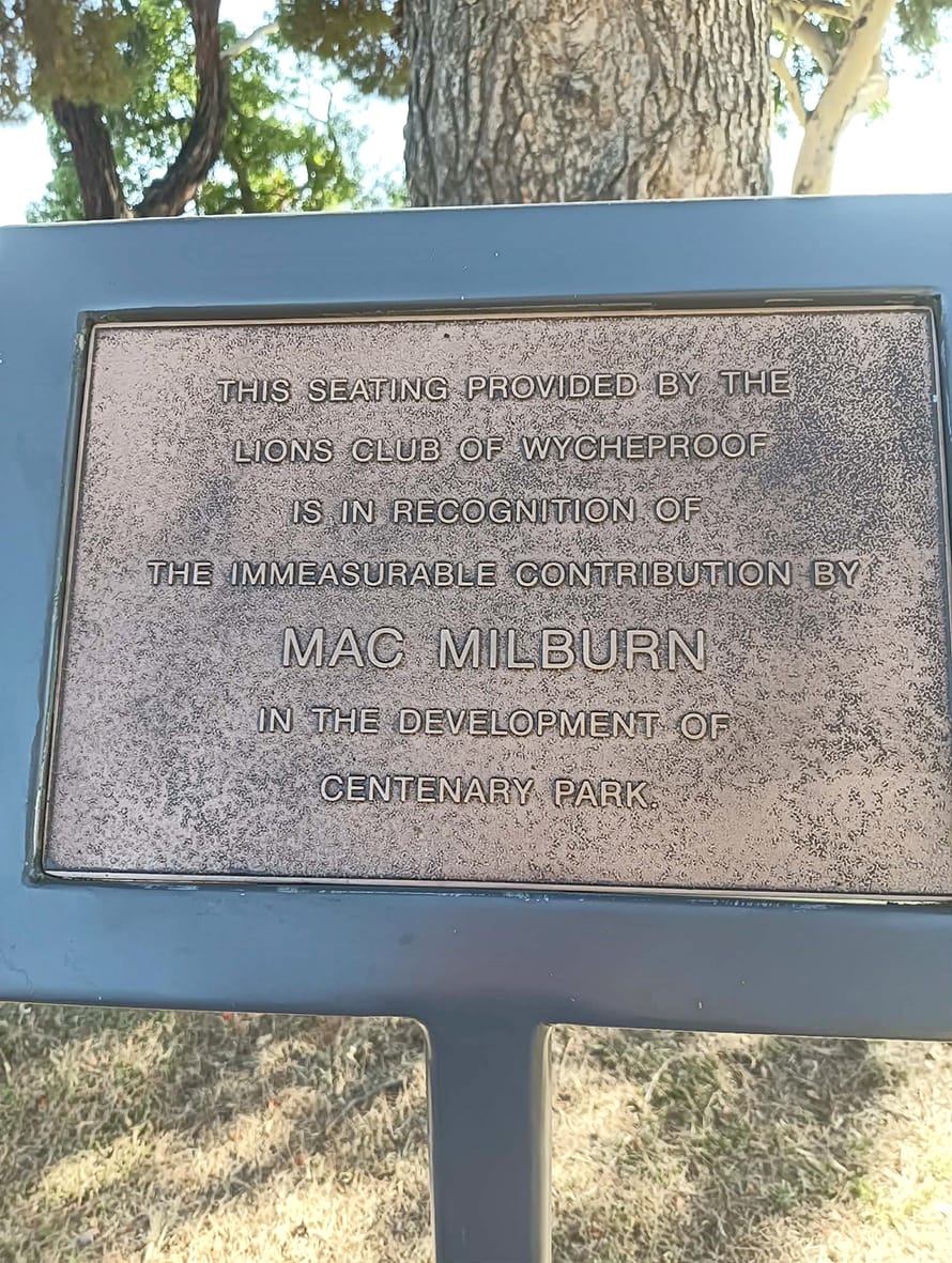 It was fondly recalled that “…Mac didn’t go to many meetings, she simply got things done. She made things happen”, she planted the seeds, quite literally, for what has become a much-loved community asset. Today, Centenary Park stands as a picturesque gathering place, a local landmark, and a welcoming halfway tourism stop for travellers between Melbourne and Mildura, along the Calder Highway.